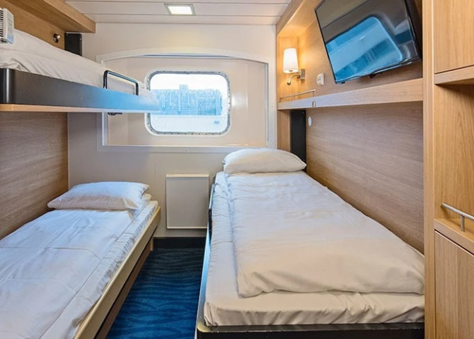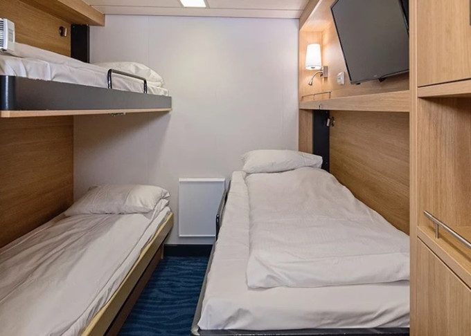 | K3 - Vnútorná kajuta Polar 8-9 m². Tv. Horná paluba. Max 3 osoby. | 4 732 € 2 366 € za osobu | ||