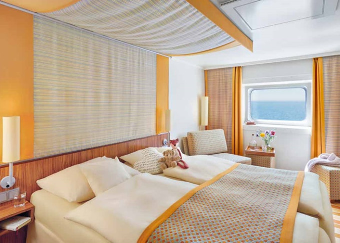 | CA - Vonkajšia kajuta PREMIUM / obmedzený výhľad 14-16,5 m². Neotvárateľné okno / obmedzený výhľad. 6. paluba. Max 2 osoby. Cenový model Premium. | 2 250 € 1 125 € za osobu |