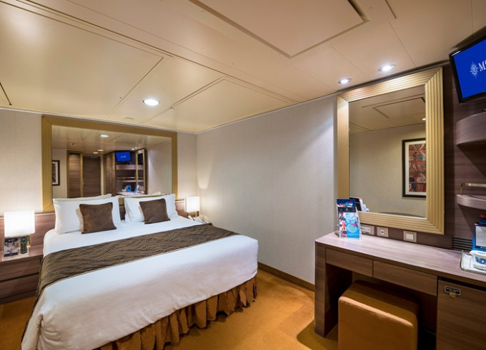 Vnútorná: 13-24m², kajuta s manželskou posteľou (na požiadanie 2 oddelené postele) a 1-2 vyklápacie horné lôžka. Klimatizácia, kúpeľňa so sprchou, toaletný stolík, skriňa, interaktívna TV, minibar, sejf, telefón, sušič na vlasy. Internetové pripojenie (za poplatok).