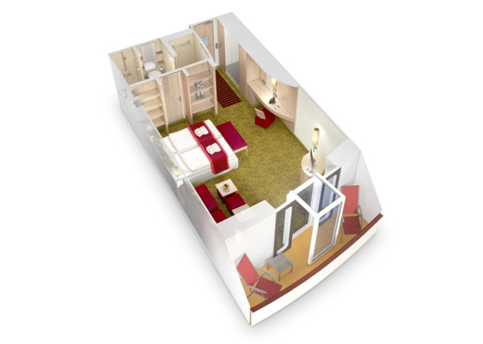 | BB - Kajuta s balkónom PREMIUM od 17 m² / balkón od 3 m². 5. až 9. paluba. Max 4 osoby. Cenový model Premium. | 3 270 € 1 635 € za osobu | ||