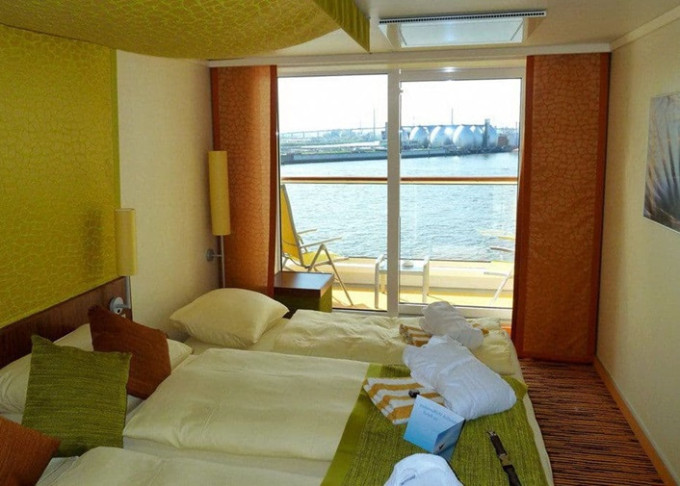 BB - Kajuta s balkónom PREMIUM od 17 m² / balkón od 3 m². 5. až 9. paluba. Max 4 osoby. Cenový model Premium. 4 590 € 2 295 € za osobu