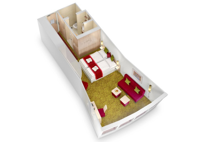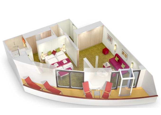 SD - Junior Suite PREMIUM od 34 m² / balkón 10 m². 7,8,9. paluba. Max 4 osoby. Cenový model Premium + výhody Junior Suite. 6 930 € 3 465 € za osobu