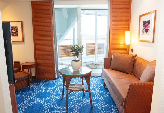 SJB - Junior Dream Suite s balkónom kajuta 21 m² / balkón 6 m² . Max 3 osoby, 9. paluba. Stolovanie vo vyhradenej časti reštaurácií Smoked Olive a Pink Moon. 4 678 € 2 339 € za osobu