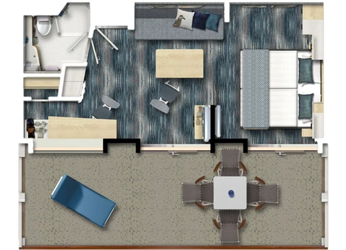 | JKAO - Junior Suite s balkónom 26 m² + balkón 7 m² so stolom. . paluba. Max 4 osoby. Výhody Junior Suite. | 15 546 € 5 182 € za osobu | ||