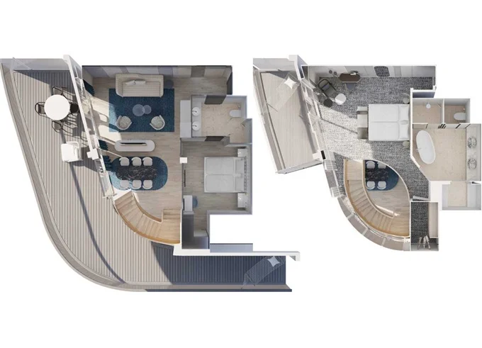 | JKCO - Junior Suite s balkónom C 26 m² + balkón 7 m² so stoličkami a podnožkami. 7. paluba. Max 4 osoby. Výhody Junior Suite. | 10 778 € 5 389 € za osobu | ||